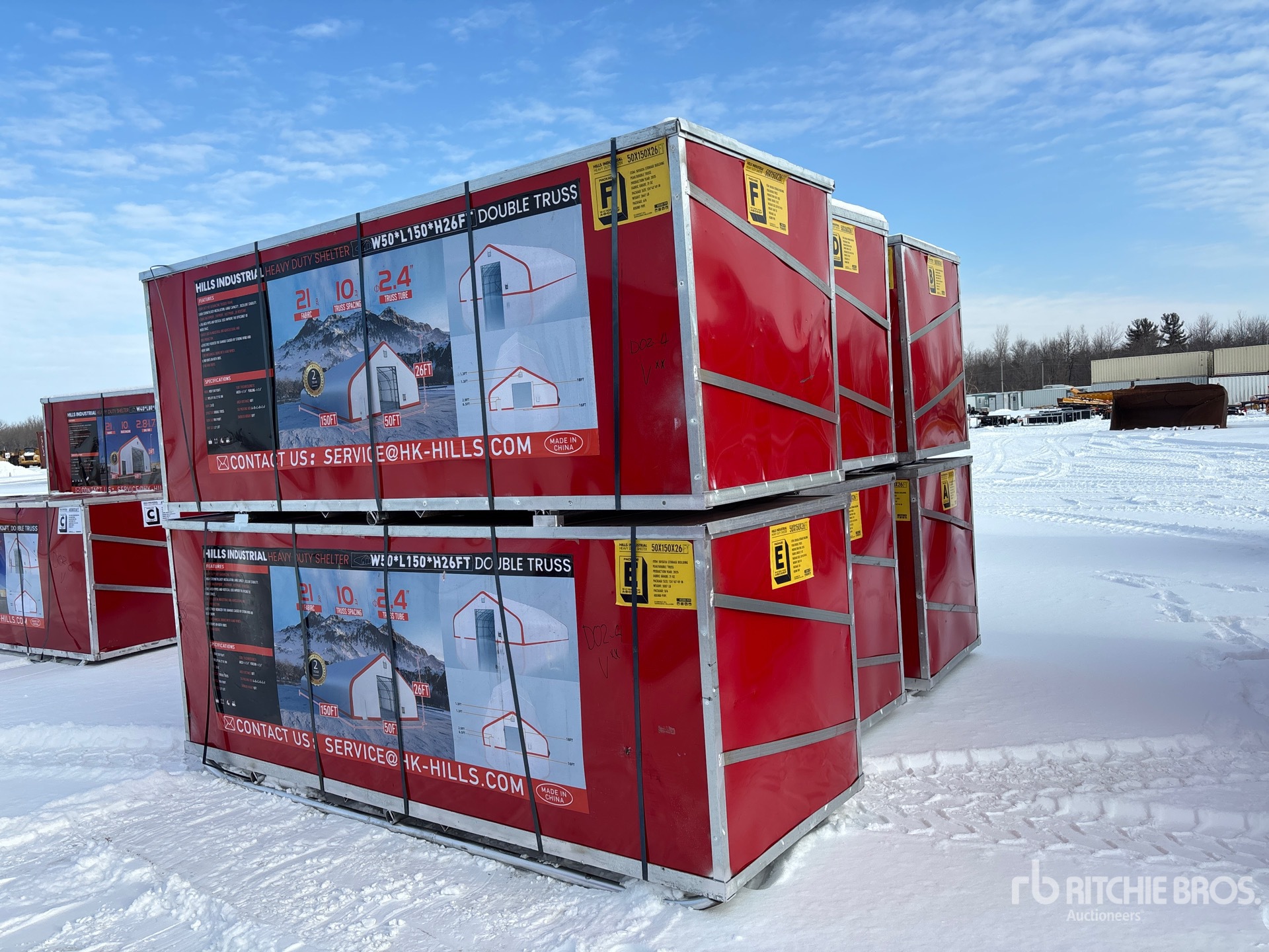 การวัดเป็นเพียงการประมาณการเท่านั้น ขนาดที่บรรทุกจริงอาจแตกต่างกันไปตามความสูงของรถบรรทุก/รถพ่วง และการกำหนดค่า/ตำแหน่งของเครื่องที่บรรทุก เป็นความรับผิดชอบของผู้ซื้อในการวัดน้ำหนักทั้งหมดก่อนออกจากสถานที่ประมูลของเรา เพื่อให้แน่ใจว่าน้ำหนักบรรทุกนั้นปลอดภัยสำหรับการขนส่ง การวัดทั้งหมดควรได้รับการตรวจสอบโดยผู้ซื้อ อย่าพึ่งพาการวัดเหล่านี้เพื่อวัตถุประสงค์ในการขนส่ง