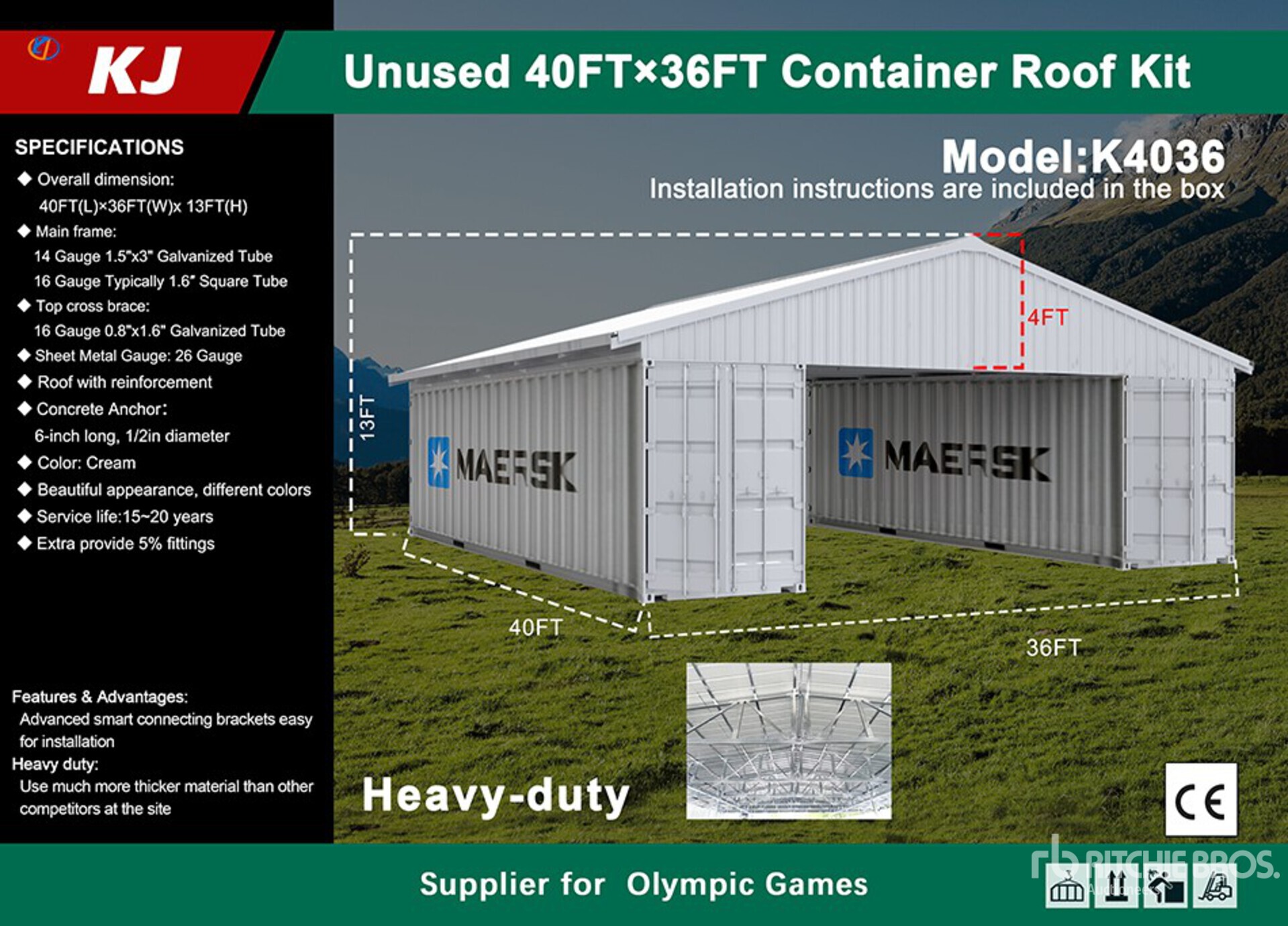 การวัดเป็นเพียงการประมาณการเท่านั้น ขนาดที่บรรทุกจริงอาจแตกต่างกันไปตามความสูงของรถบรรทุก/รถพ่วง และการกำหนดค่า/ตำแหน่งของเครื่องที่บรรทุก เป็นความรับผิดชอบของผู้ซื้อในการวัดน้ำหนักทั้งหมดก่อนออกจากสถานที่ประมูลของเรา เพื่อให้แน่ใจว่าน้ำหนักบรรทุกนั้นปลอดภัยสำหรับการขนส่ง การวัดทั้งหมดควรได้รับการตรวจสอบโดยผู้ซื้อ อย่าพึ่งพาการวัดเหล่านี้เพื่อวัตถุประสงค์ในการขนส่ง