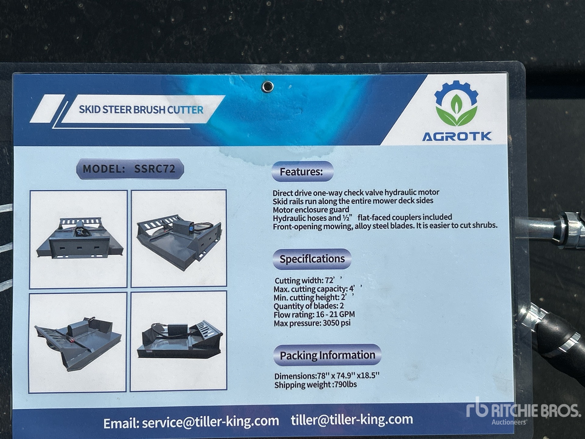 ข้อมูลอุปกรณ์โดยละเอียดมีขอบเขตจำกัด และผู้จัดประมูลของ Ritchie Bros. ไม่ได้ตรวจสอบลักษณะหรือส่วนประกอบใดๆ ของอุปกรณ์นอกเหนือจากที่ระบุไว้อย่างชัดแจ้งในที่นี้ เว้นแต่จะระบุไว้อย่างชัดแจ้ง เราไม่รับรองหรือรับประกันทั้งโดยชัดแจ้งหรือโดยปริยายเกี่ยวกับอุปกรณ์หรือส่วนประกอบ รวมถึงแต่ไม่จำกัดเพียงการรับรองหรือการรับประกันใดๆ ที่เกี่ยวข้องกับการทำงาน ความสอดคล้องหรือการปฏิบัติตามมาตรฐานความปลอดภัยหรือข้อกำหนดของหน่วยงานที่บังคับใช้หรือหน่วยงานกำกับดูแล ความเหมาะสม เพื่อวัตถุประสงค์เฉพาะใดๆ หรือเพื่อการค้า ขอแนะนำอย่างยิ่งให้ทำการตรวจสอบอุปกรณ์โดยละเอียดด้วยตนเองก่อนการประมูล