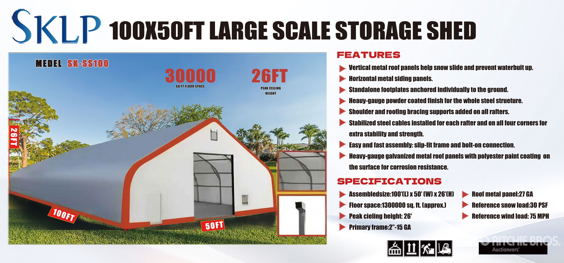 การวัดเป็นเพียงการประมาณการเท่านั้น ขนาดที่บรรทุกจริงอาจแตกต่างกันไปตามความสูงของรถบรรทุก/รถพ่วง และการกำหนดค่า/ตำแหน่งของเครื่องที่บรรทุก เป็นความรับผิดชอบของผู้ซื้อในการวัดน้ำหนักทั้งหมดก่อนออกจากสถานที่ประมูลของเรา เพื่อให้แน่ใจว่าน้ำหนักบรรทุกนั้นปลอดภัยสำหรับการขนส่ง การวัดทั้งหมดควรได้รับการตรวจสอบโดยผู้ซื้อ อย่าพึ่งพาการวัดเหล่านี้เพื่อวัตถุประสงค์ในการขนส่ง