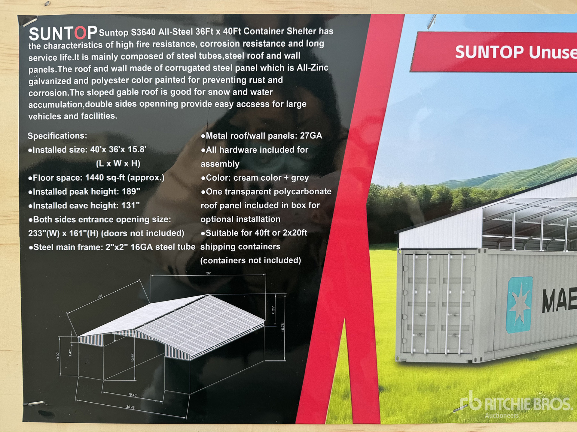 การวัดเป็นเพียงการประมาณการเท่านั้น ขนาดที่บรรทุกจริงอาจแตกต่างกันไปตามความสูงของรถบรรทุก/รถพ่วง และการกำหนดค่า/ตำแหน่งของเครื่องที่บรรทุก เป็นความรับผิดชอบของผู้ซื้อในการวัดน้ำหนักทั้งหมดก่อนออกจากสถานที่ประมูลของเรา เพื่อให้แน่ใจว่าน้ำหนักบรรทุกนั้นปลอดภัยสำหรับการขนส่ง การวัดทั้งหมดควรได้รับการตรวจสอบโดยผู้ซื้อ อย่าพึ่งพาการวัดเหล่านี้เพื่อวัตถุประสงค์ในการขนส่ง