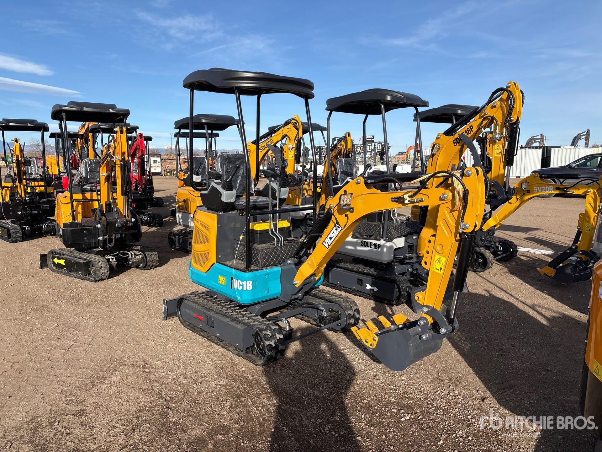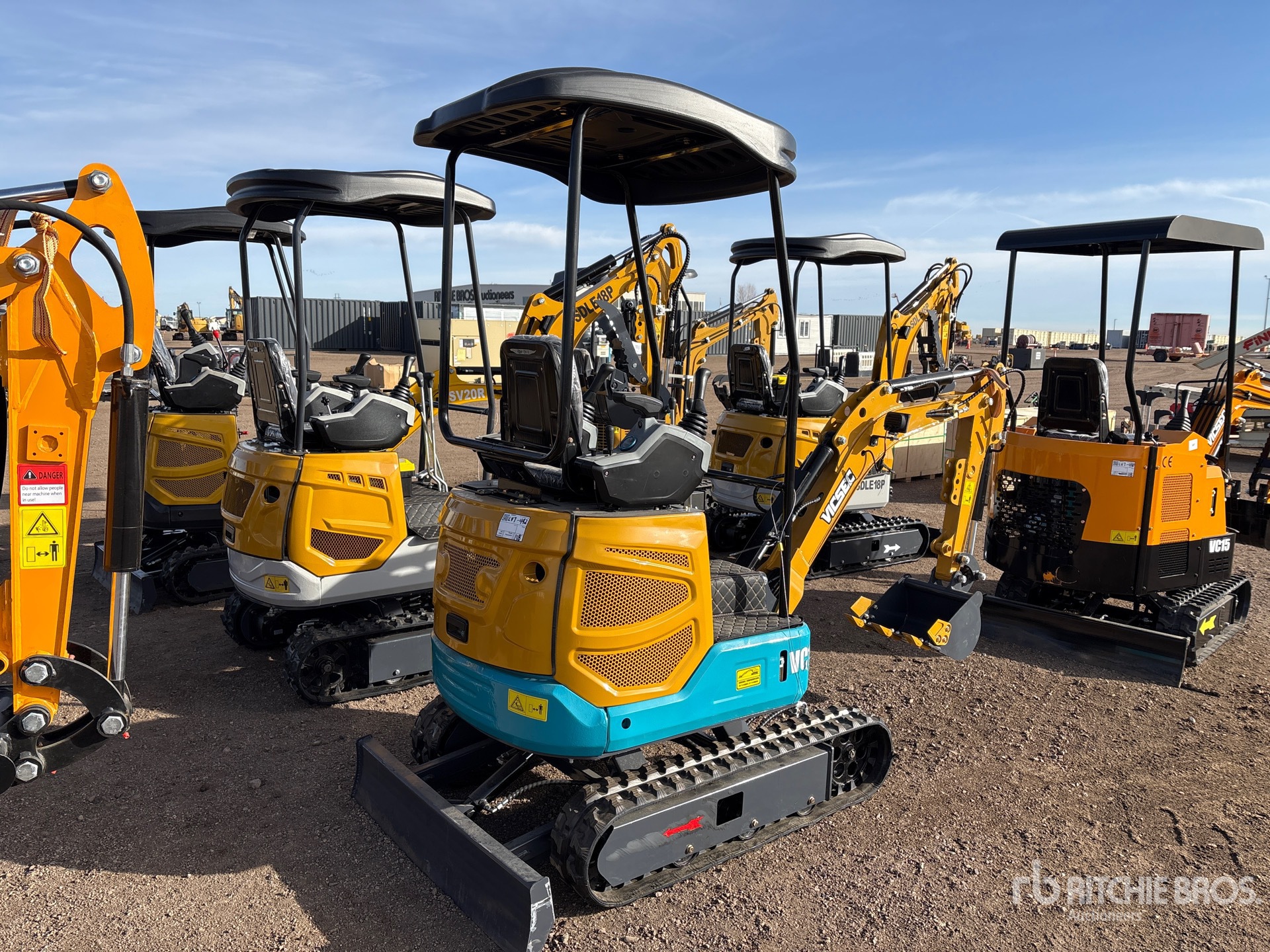 2025 US EPA Label, 2 ft 7 in Stick, Auxiliary Hydraulic Plumbing, Backfill Blade, 7 in Rubber Tracks, 15 in Digging Bucket, Thumb Bracket