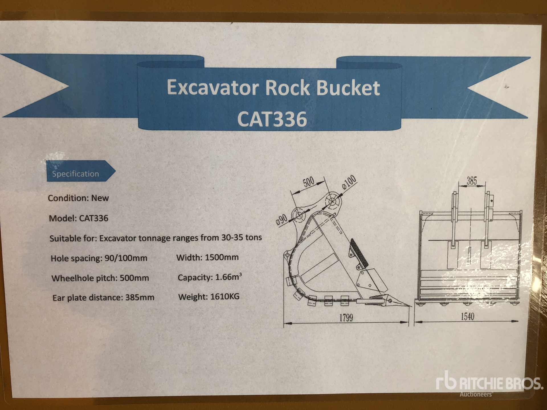 2026 Warrior WBRC30-1500 59 in Digging Excavator Bucket - Fits Cat 336 / 30 - 35 ton (Unused)