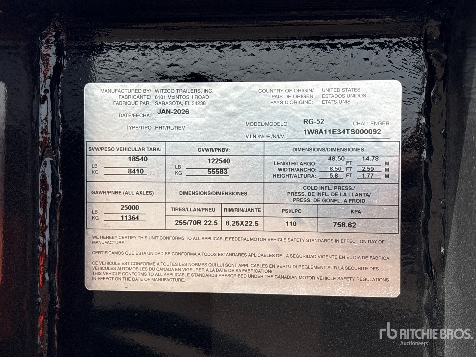 122540 lb GVWR, Hydraulic Removable Gooseneck, 22 ft 5 in x 102 in Main Deck, Deck Over Tires, Folding Side Extensions, Walking Beam, Gasoline Driven Self Contained Hydraulic System