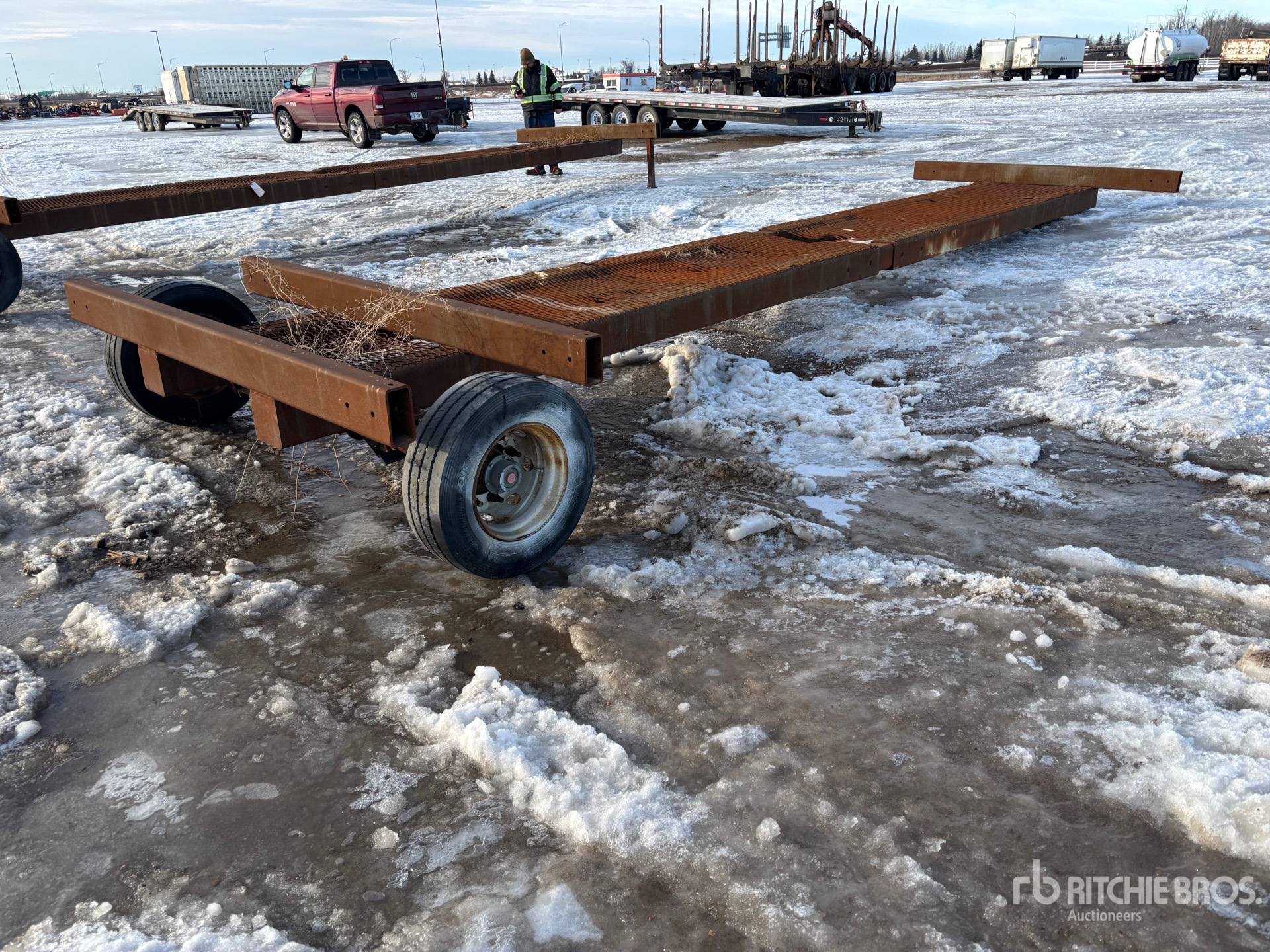 การวัดเป็นเพียงการประมาณการเท่านั้น ขนาดที่บรรทุกจริงอาจแตกต่างกันไปตามความสูงของรถบรรทุก/รถพ่วง และการกำหนดค่า/ตำแหน่งของเครื่องที่บรรทุก เป็นความรับผิดชอบของผู้ซื้อในการวัดน้ำหนักทั้งหมดก่อนออกจากสถานที่ประมูลของเรา เพื่อให้แน่ใจว่าน้ำหนักบรรทุกนั้นปลอดภัยสำหรับการขนส่ง การวัดทั้งหมดควรได้รับการตรวจสอบโดยผู้ซื้อ อย่าพึ่งพาการวัดเหล่านี้เพื่อวัตถุประสงค์ในการขนส่ง