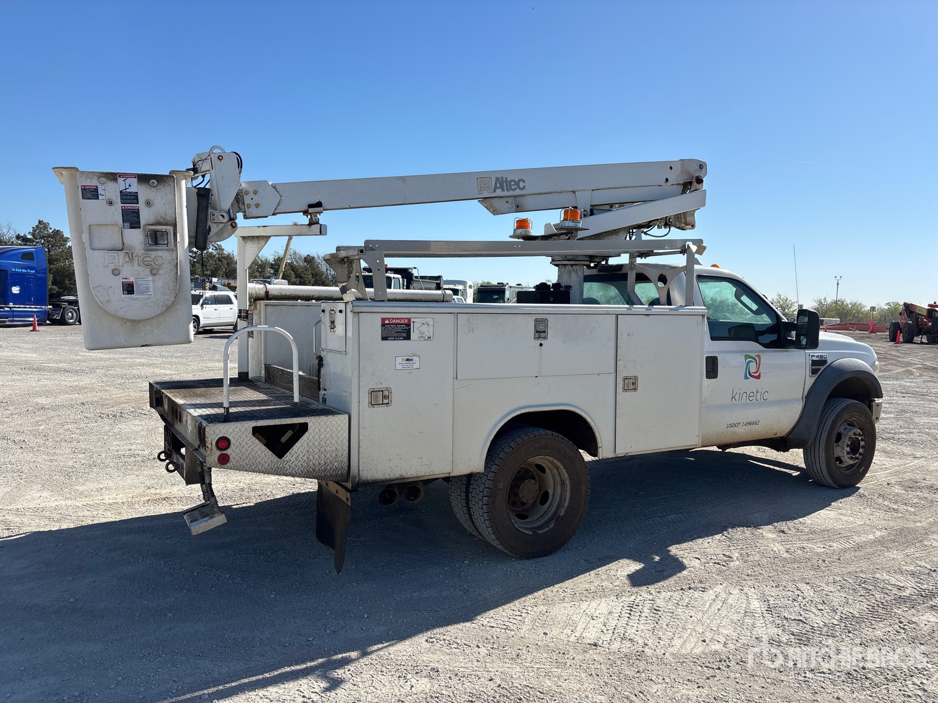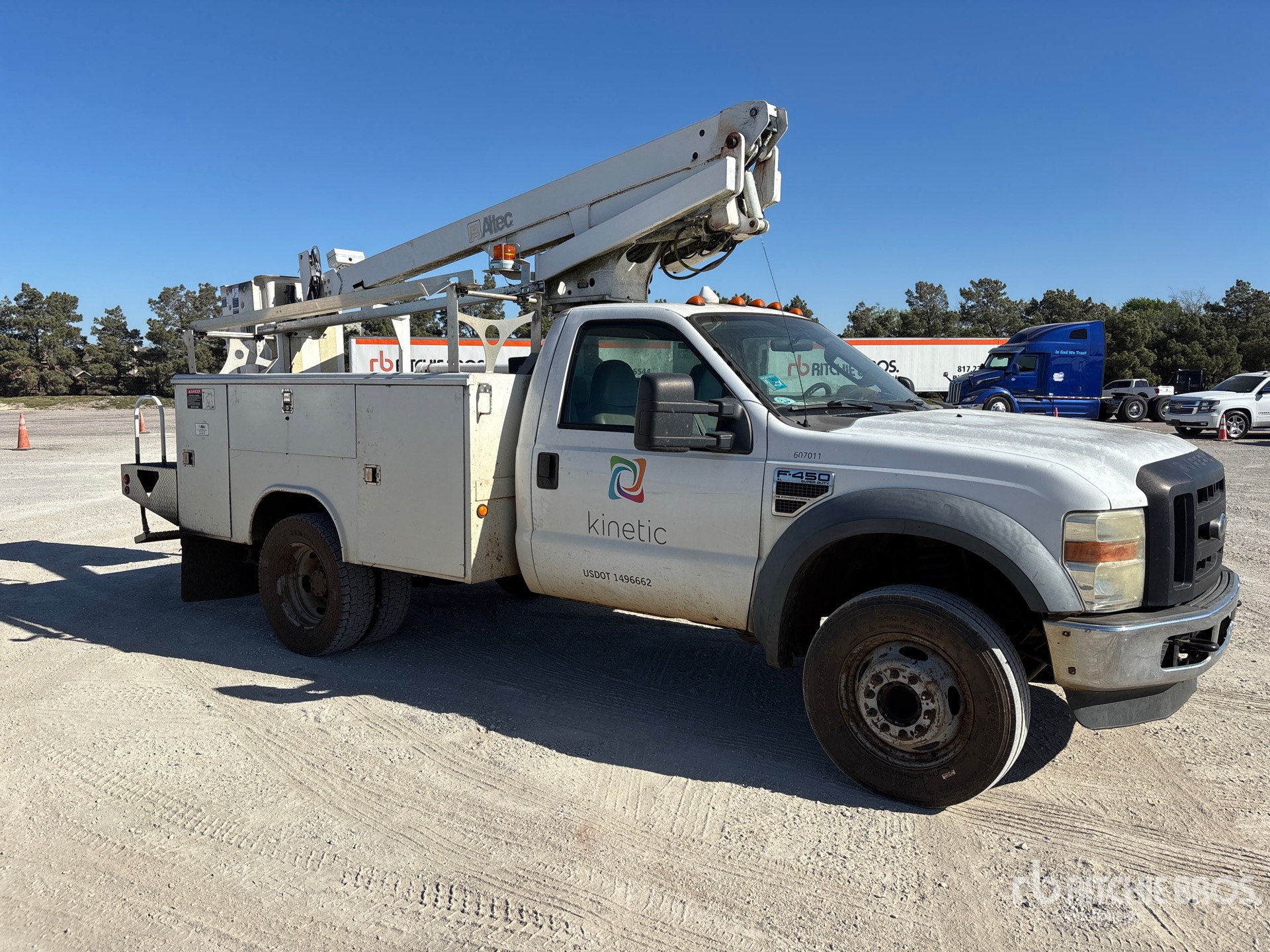 V8 Diesel Engine, 10659 Engine hrs, Automatic Transmission, 6500 lb Front Axle, 12000 lb Rears, 16000 lb GVWR, 245/70R19.5, Spring Suspension, 141 in Wheelbase, PTO, 300 lb Capacity, Center Mounted, One-Person Articulating-Telescopic Boom, Utility Body, Remote Control w/Cord, 11 ft 6 in x 94 in Bed