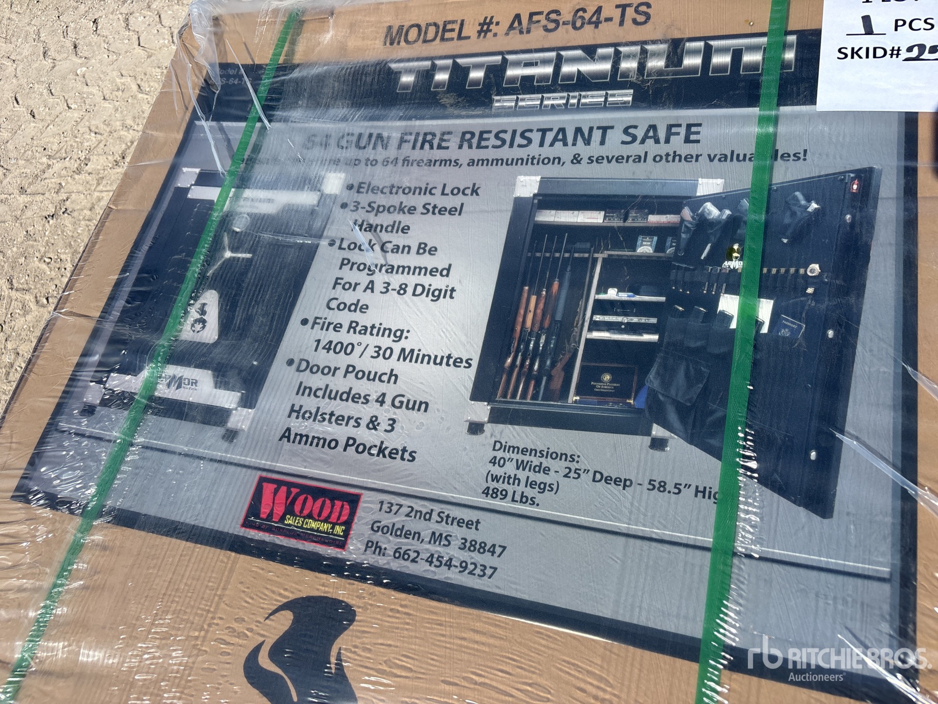 40 in Wide x 59 in High x 25 in Deep, Fire Safe, 1400 Degree Fire Rating , Digital Combination Key Pad W/Backup Key, Additional Door Pouch Storage Feature For Pistols & other valuables, 5 live action locking bolts