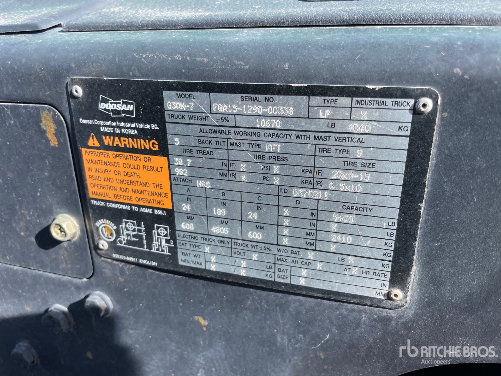 ข้อมูลอุปกรณ์โดยละเอียดมีขอบเขตจำกัด และผู้จัดประมูลของ Ritchie Bros. ไม่ได้ตรวจสอบลักษณะหรือส่วนประกอบใดๆ ของอุปกรณ์นอกเหนือจากที่ระบุไว้อย่างชัดแจ้งในที่นี้ เว้นแต่จะระบุไว้อย่างชัดแจ้ง เราไม่รับรองหรือรับประกันทั้งโดยชัดแจ้งหรือโดยปริยายเกี่ยวกับอุปกรณ์หรือส่วนประกอบ รวมถึงแต่ไม่จำกัดเพียงการรับรองหรือการรับประกันใดๆ ที่เกี่ยวข้องกับการทำงาน ความสอดคล้องหรือการปฏิบัติตามมาตรฐานความปลอดภัยหรือข้อกำหนดของหน่วยงานที่บังคับใช้หรือหน่วยงานกำกับดูแล ความเหมาะสม เพื่อวัตถุประสงค์เฉพาะใดๆ หรือเพื่อการค้า ขอแนะนำอย่างยิ่งให้ทำการตรวจสอบอุปกรณ์โดยละเอียดด้วยตนเองก่อนการประมูล