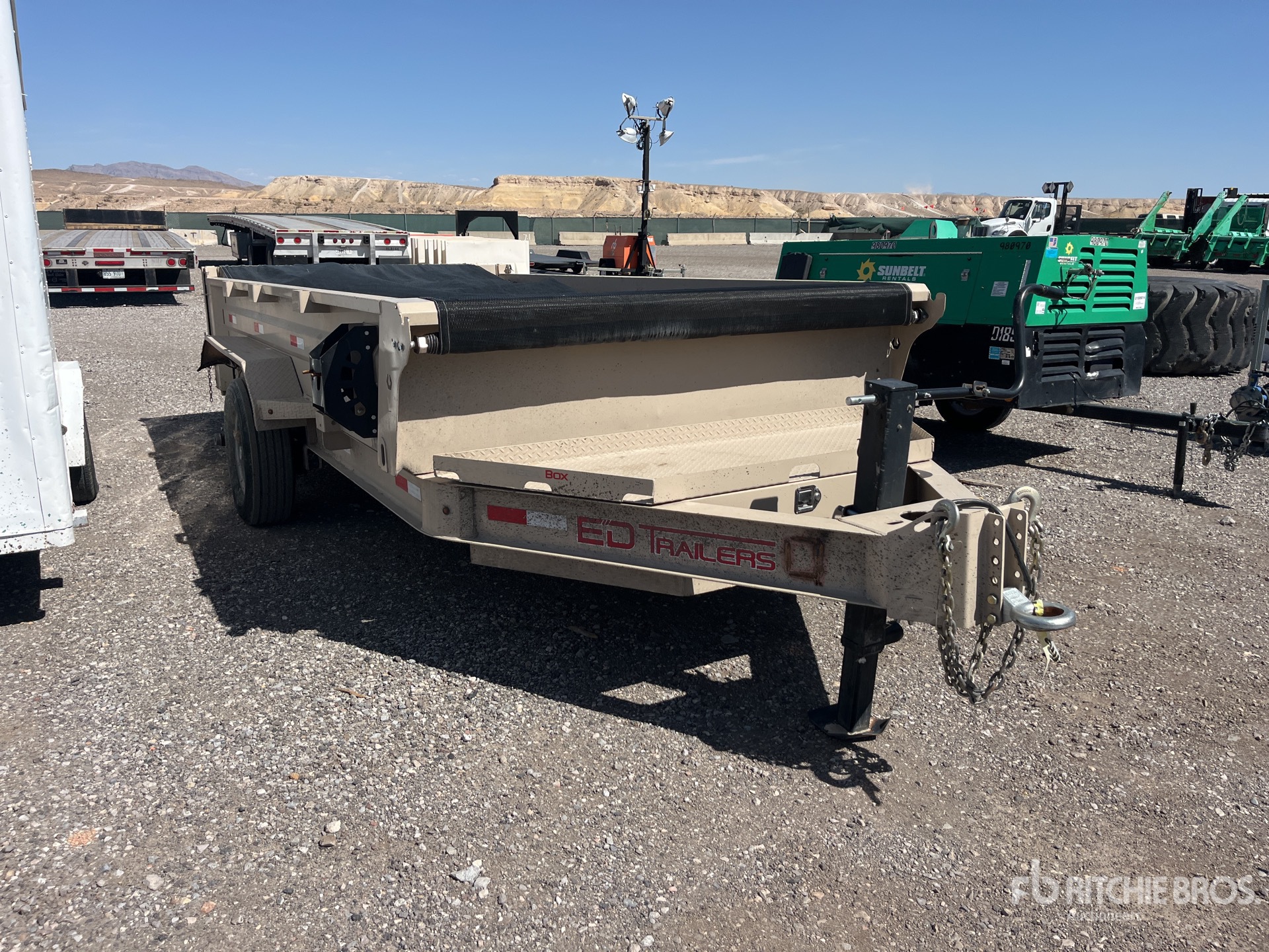 Lunette Ring Hitch, Spring Suspension, Electric Brakes, 14 ft Body, 20 in Side Walls, Steel Body, Manual Roll Tarp, Split Swing Tailgate, 235/80R16 Tires