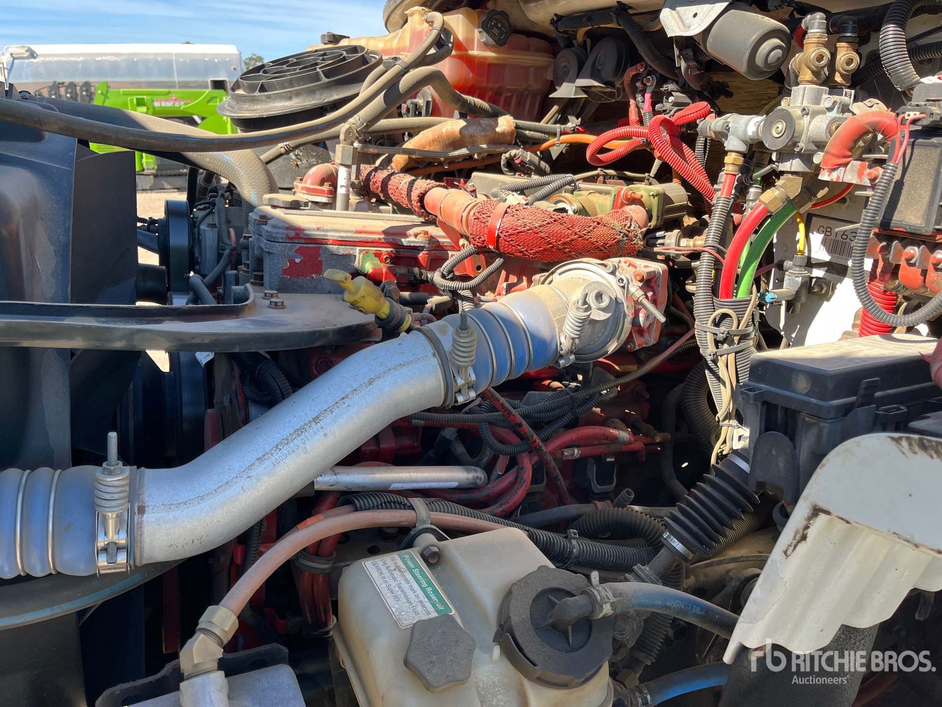Cummins 6 Cylinder Diesel 260 hp Engine, Requires Diesel Exhaust Fluid, 14478 Engine hrs, Allison 3500 Automatic Transmission, 10000 lb Front Axle, 23000 lb Rears, Dana Drive Axles, 6.17:1 Axle Ratio, 33000 lb GVWR, 11R22.5, Air Ride Suspension, 145 in Wheelbase, PTO, Mechanical Broom Sweeper, Dual Controls, 60 in Rear Broom, Gutter Brooms, Material Elevator, Hydraulic Dump, Rear-View Camera