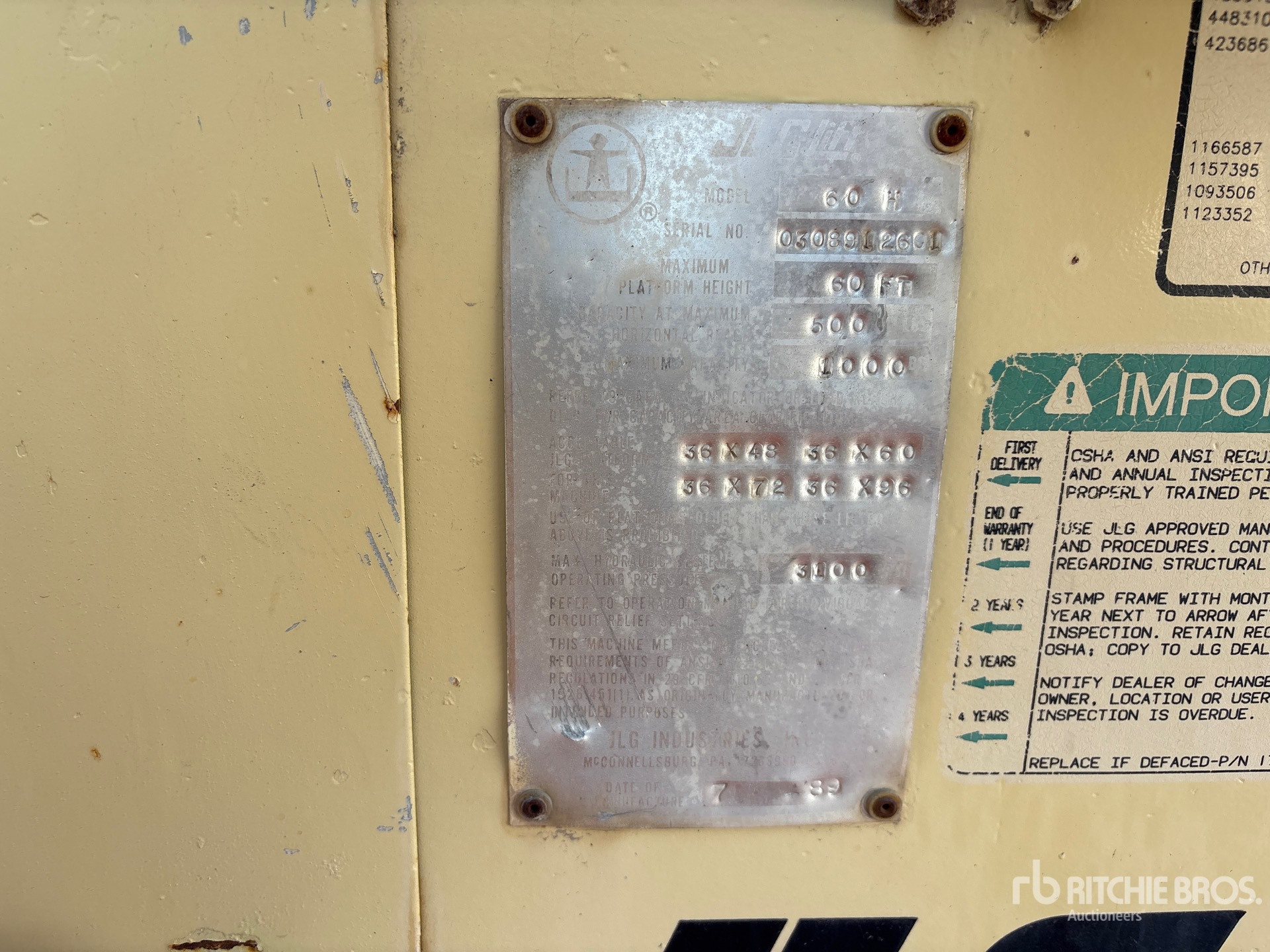 ข้อมูลอุปกรณ์โดยละเอียดมีขอบเขตจำกัด และผู้จัดประมูลของ Ritchie Bros. ไม่ได้ตรวจสอบลักษณะหรือส่วนประกอบใดๆ ของอุปกรณ์นอกเหนือจากที่ระบุไว้อย่างชัดแจ้งในที่นี้ เว้นแต่จะระบุไว้อย่างชัดแจ้ง เราไม่รับรองหรือรับประกันทั้งโดยชัดแจ้งหรือโดยปริยายเกี่ยวกับอุปกรณ์หรือส่วนประกอบ รวมถึงแต่ไม่จำกัดเพียงการรับรองหรือการรับประกันใดๆ ที่เกี่ยวข้องกับการทำงาน ความสอดคล้องหรือการปฏิบัติตามมาตรฐานความปลอดภัยหรือข้อกำหนดของหน่วยงานที่บังคับใช้หรือหน่วยงานกำกับดูแล ความเหมาะสม เพื่อวัตถุประสงค์เฉพาะใดๆ หรือเพื่อการค้า ขอแนะนำอย่างยิ่งให้ทำการตรวจสอบอุปกรณ์โดยละเอียดด้วยตนเองก่อนการประมูล
