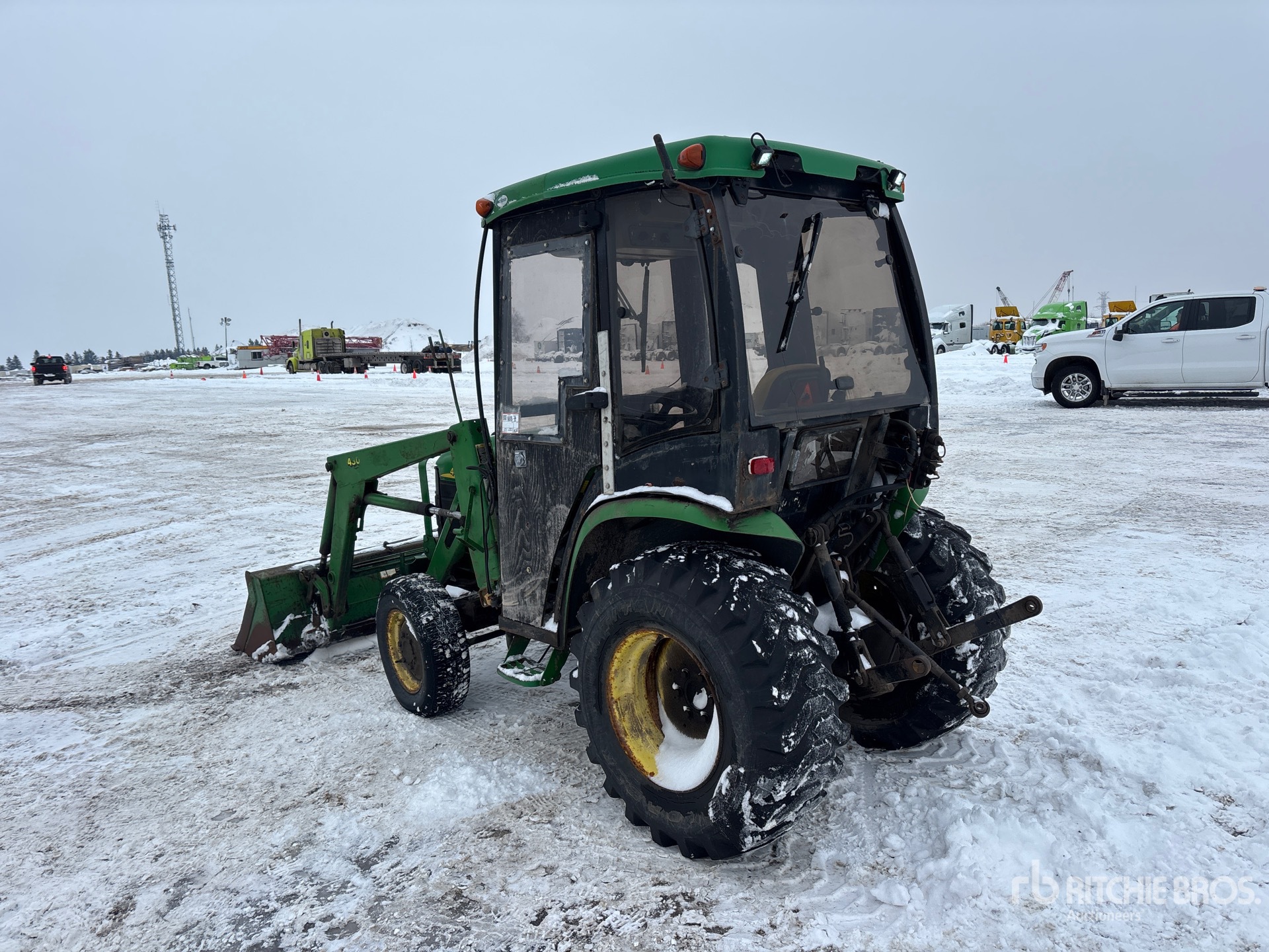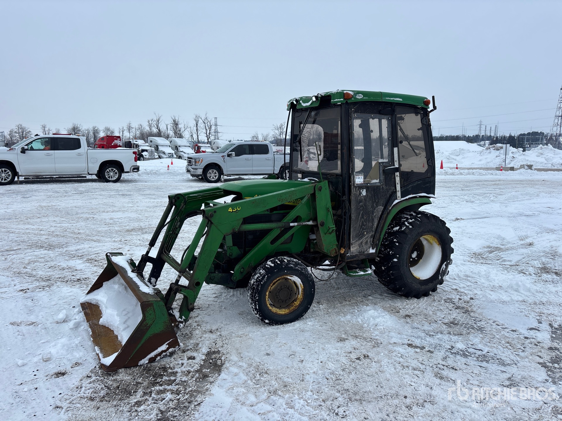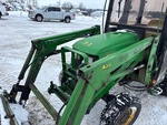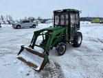 Enclosed Cab, Air Conditioner, Hydrostatic Drive, John Deere Loader, Quick Coupler, John Deere 61 in Bucket, Mid-Mount PTO, 2 Rear Remotes, 540 PTO, 3-Point Hitch, 205/75R14 Front Tires, 15x19.5 NHS Rear Tires