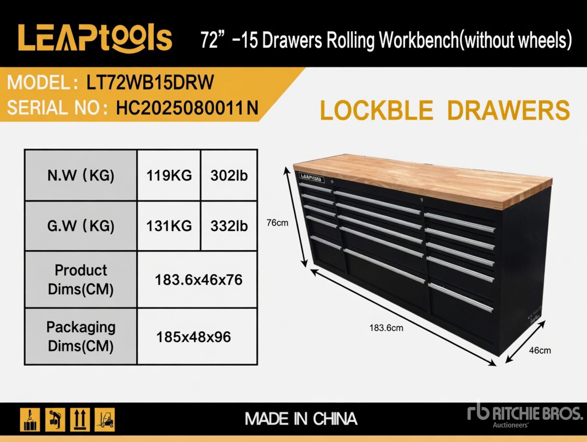 1836 mm, 15 Drawers Rolling Workbench