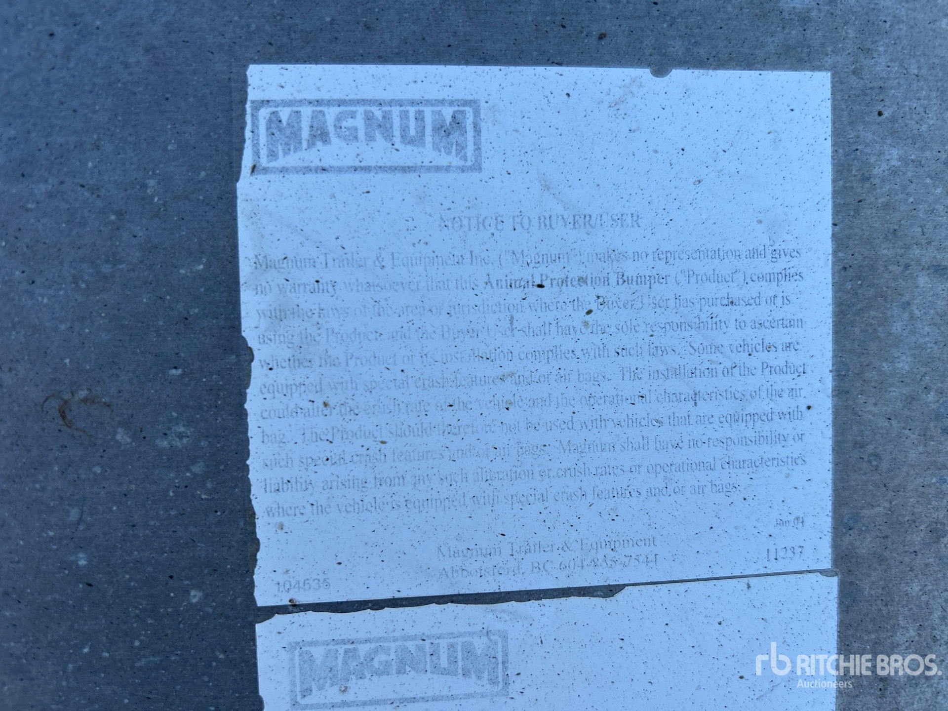 ข้อมูลอุปกรณ์โดยละเอียดมีขอบเขตจำกัด และผู้จัดประมูลของ Ritchie Bros. ไม่ได้ตรวจสอบลักษณะหรือส่วนประกอบใดๆ ของอุปกรณ์นอกเหนือจากที่ระบุไว้อย่างชัดแจ้งในที่นี้ เว้นแต่จะระบุไว้อย่างชัดแจ้ง เราไม่รับรองหรือรับประกันทั้งโดยชัดแจ้งหรือโดยปริยายเกี่ยวกับอุปกรณ์หรือส่วนประกอบ รวมถึงแต่ไม่จำกัดเพียงการรับรองหรือการรับประกันใดๆ ที่เกี่ยวข้องกับการทำงาน ความสอดคล้องหรือการปฏิบัติตามมาตรฐานความปลอดภัยหรือข้อกำหนดของหน่วยงานที่บังคับใช้หรือหน่วยงานกำกับดูแล ความเหมาะสม เพื่อวัตถุประสงค์เฉพาะใดๆ หรือเพื่อการค้า ขอแนะนำอย่างยิ่งให้ทำการตรวจสอบอุปกรณ์โดยละเอียดด้วยตนเองก่อนการประมูล