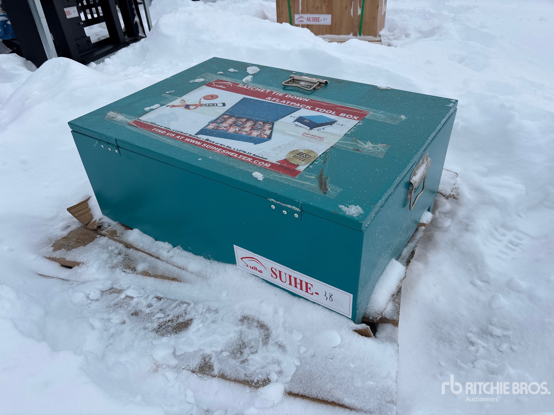 การวัดเป็นเพียงการประมาณการเท่านั้น ขนาดที่บรรทุกจริงอาจแตกต่างกันไปตามความสูงของรถบรรทุก/รถพ่วง และการกำหนดค่า/ตำแหน่งของเครื่องที่บรรทุก เป็นความรับผิดชอบของผู้ซื้อในการวัดน้ำหนักทั้งหมดก่อนออกจากสถานที่ประมูลของเรา เพื่อให้แน่ใจว่าน้ำหนักบรรทุกนั้นปลอดภัยสำหรับการขนส่ง การวัดทั้งหมดควรได้รับการตรวจสอบโดยผู้ซื้อ อย่าพึ่งพาการวัดเหล่านี้เพื่อวัตถุประสงค์ในการขนส่ง