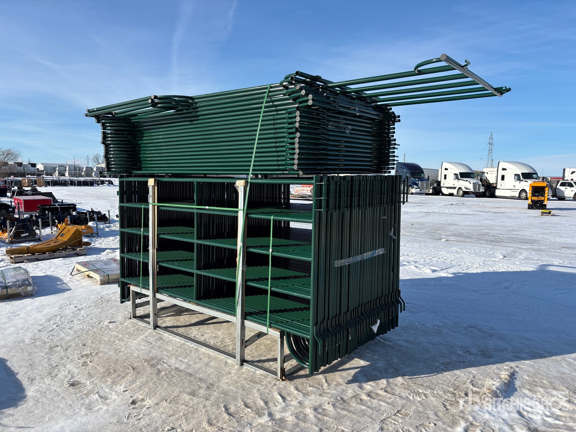 การวัดเป็นเพียงการประมาณการเท่านั้น ขนาดที่บรรทุกจริงอาจแตกต่างกันไปตามความสูงของรถบรรทุก/รถพ่วง และการกำหนดค่า/ตำแหน่งของเครื่องที่บรรทุก เป็นความรับผิดชอบของผู้ซื้อในการวัดน้ำหนักทั้งหมดก่อนออกจากสถานที่ประมูลของเรา เพื่อให้แน่ใจว่าน้ำหนักบรรทุกนั้นปลอดภัยสำหรับการขนส่ง การวัดทั้งหมดควรได้รับการตรวจสอบโดยผู้ซื้อ อย่าพึ่งพาการวัดเหล่านี้เพื่อวัตถุประสงค์ในการขนส่ง