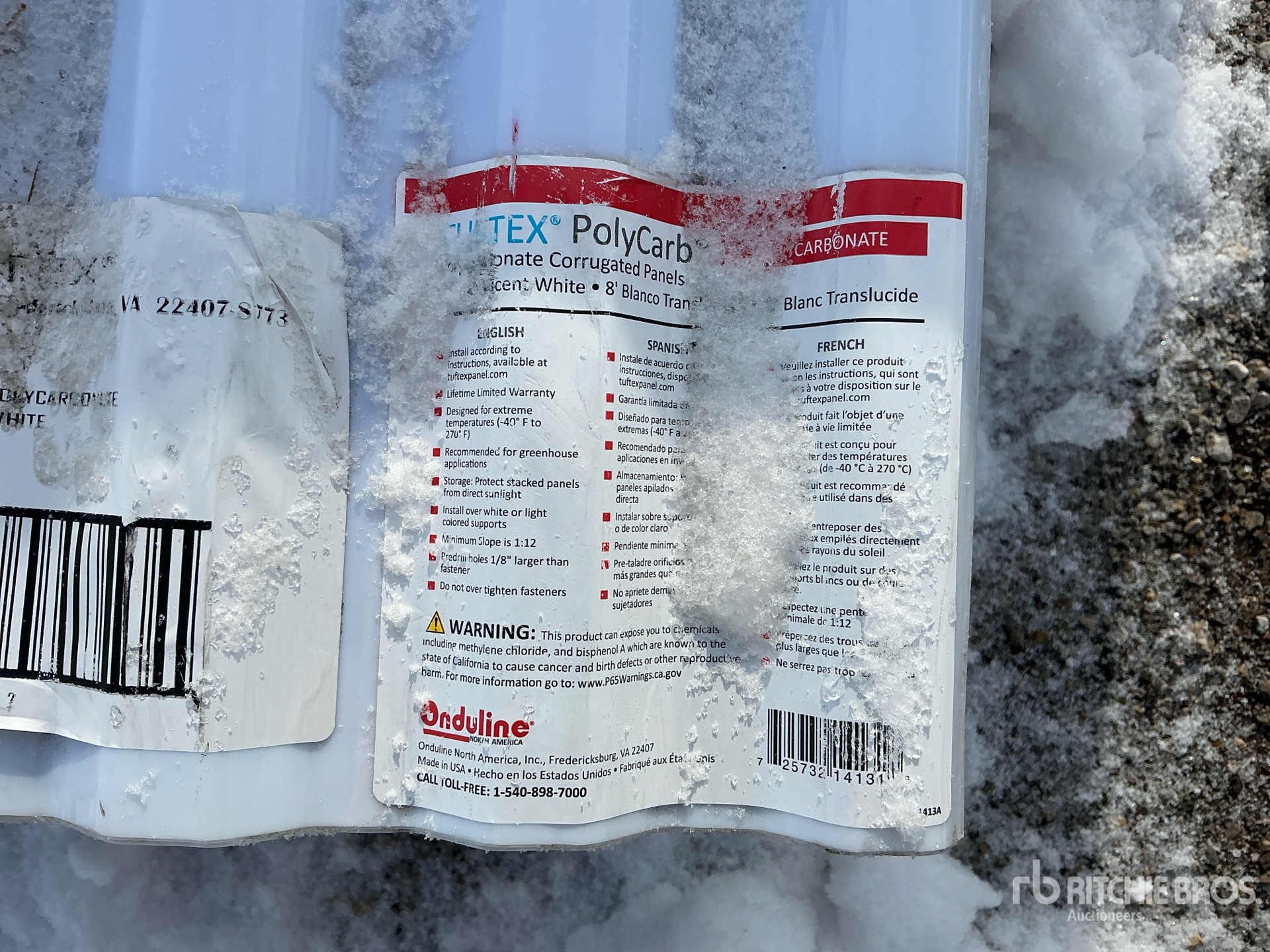 Quantity of (70) 26 in x 8 ft Polycarbonate Roofing (Unused)
