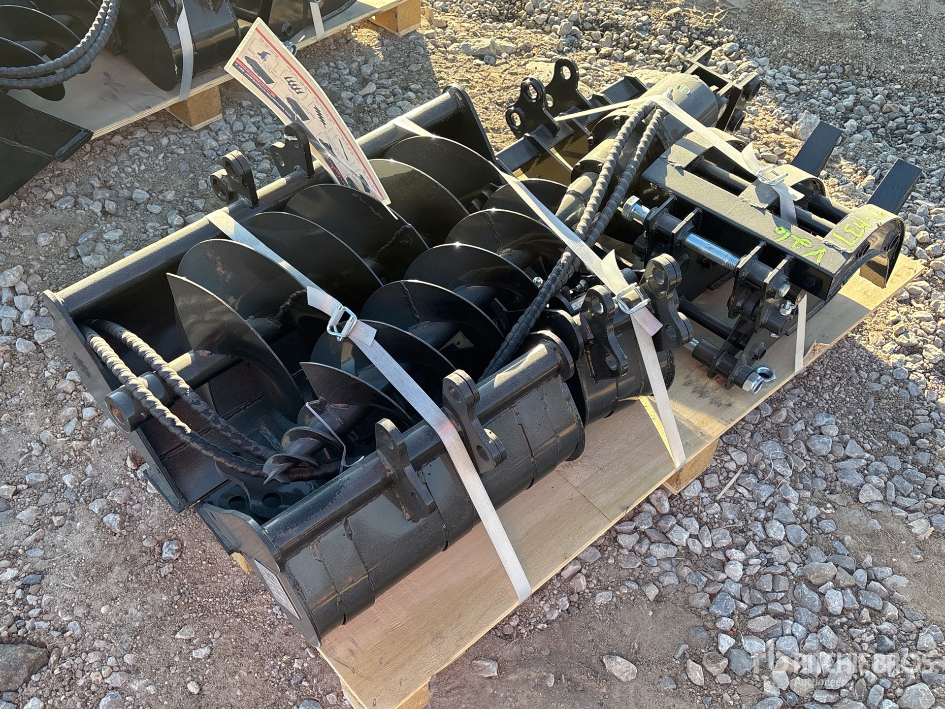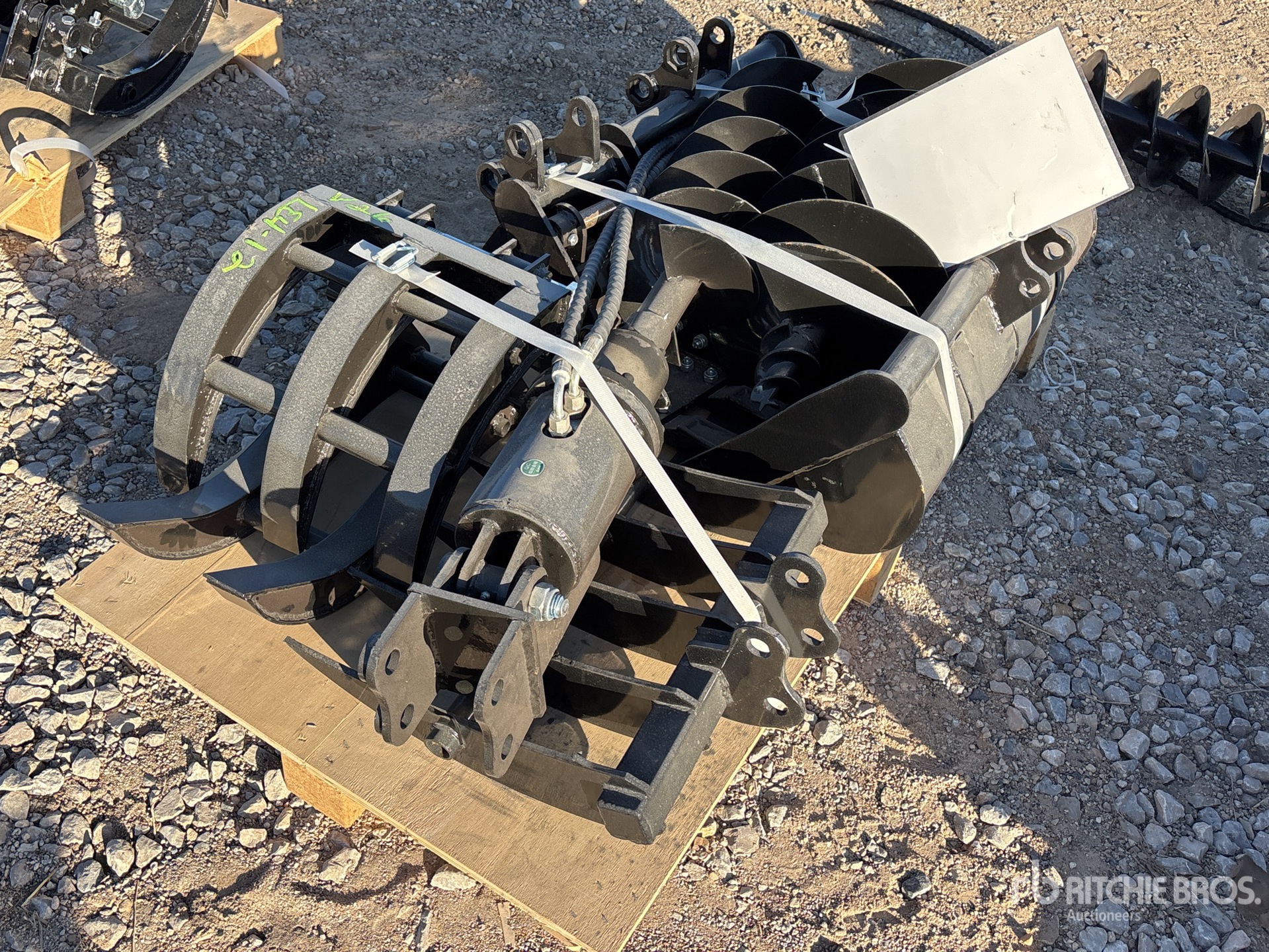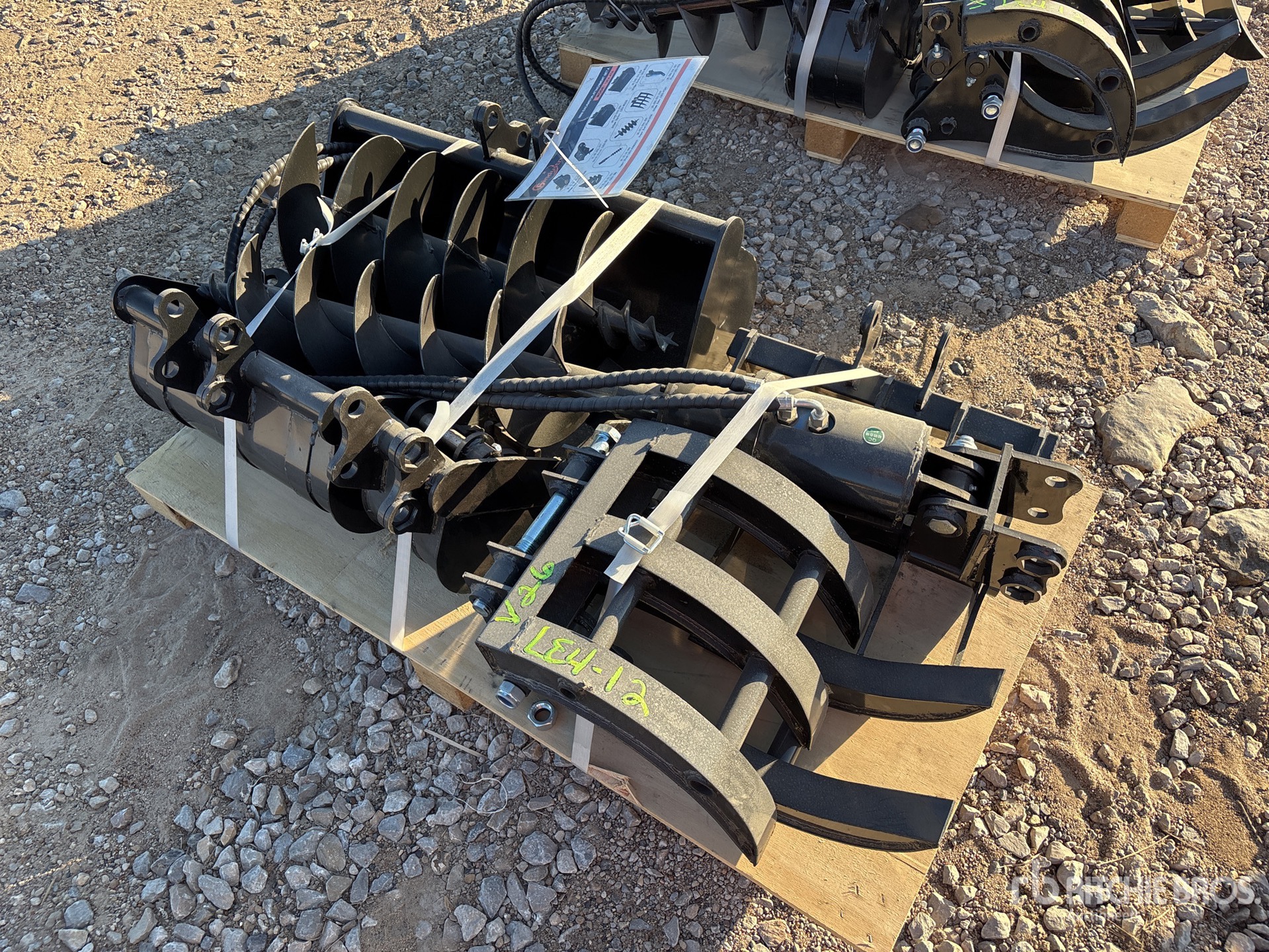 (1) 8 in Bucket, (1) 20 in Bucket, (1) 32 in Bucket, (1) Quick Coupler, (1) Ripper, (1) Grapple, (1) Rake, (1) 8 in Auger, (1) 12 in Auger,