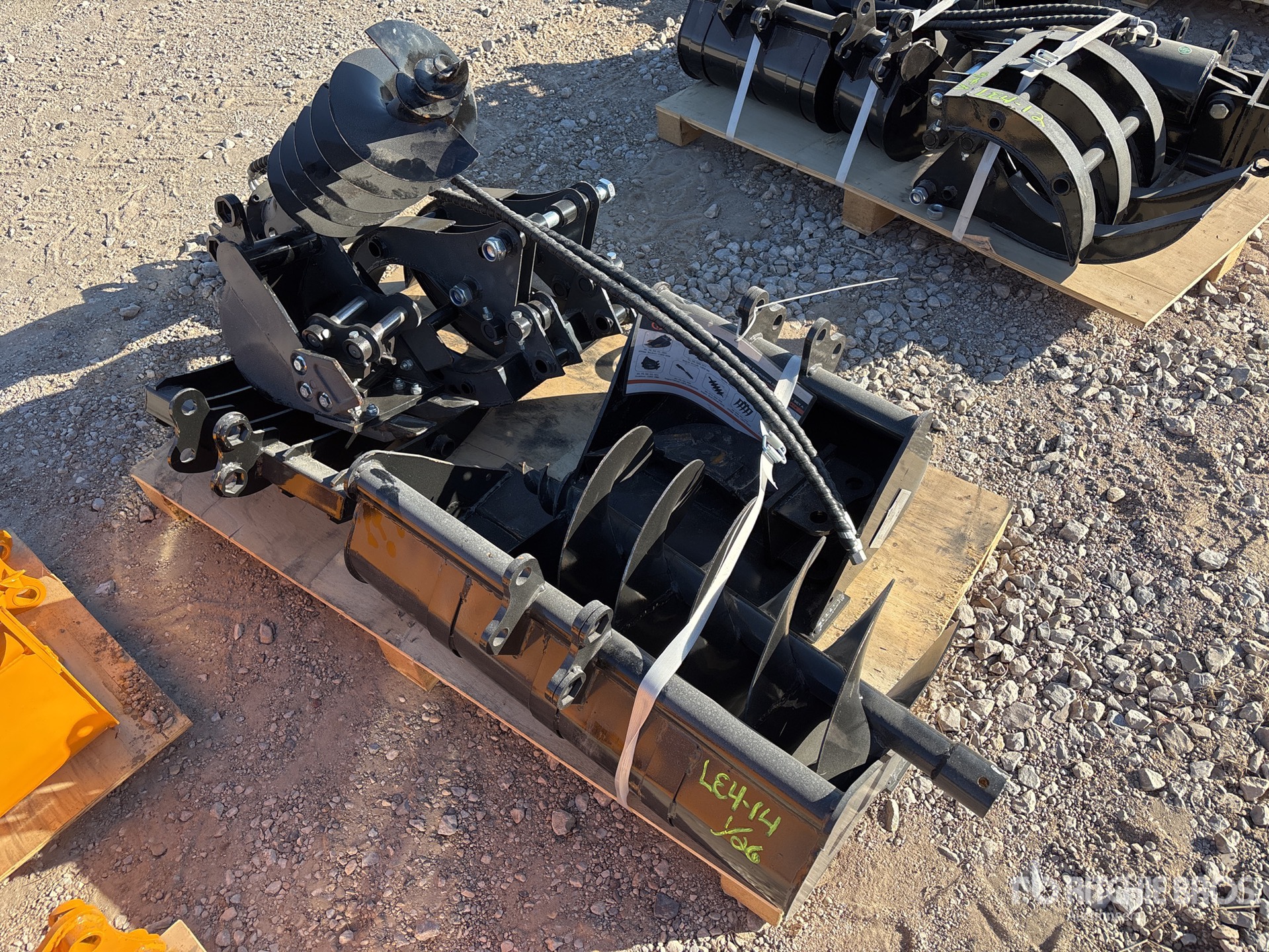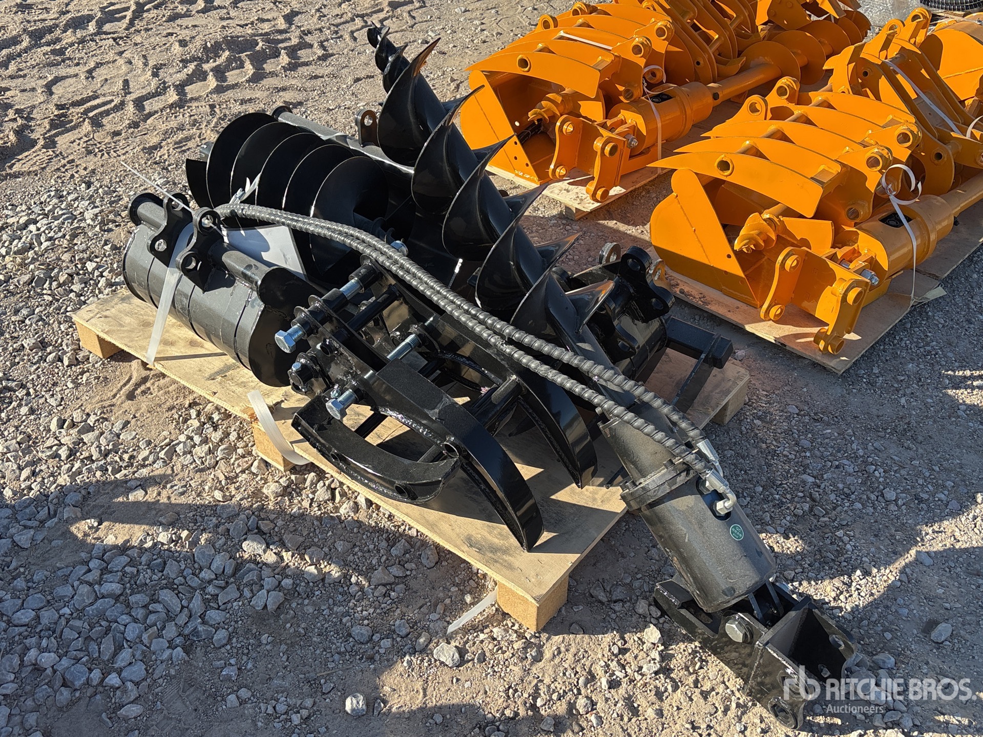 (1) 8 in Bucket, (1) 20 in Bucket, (1) 32 in Bucket, (1) Quick Coupler, (1) Ripper, (1) Grapple, (1) Rake, (1) 8 in Auger, (1) 12 in Auger,
