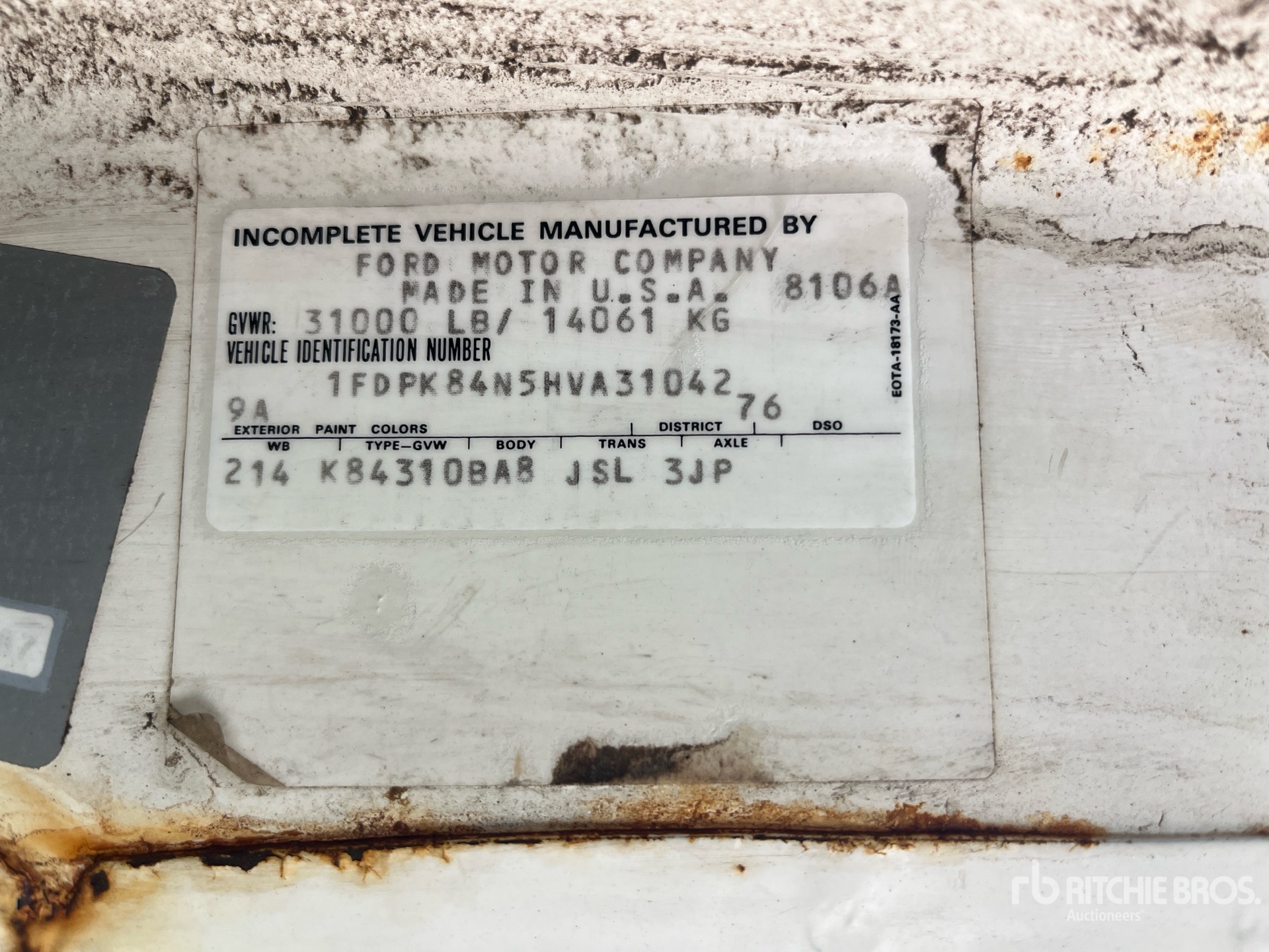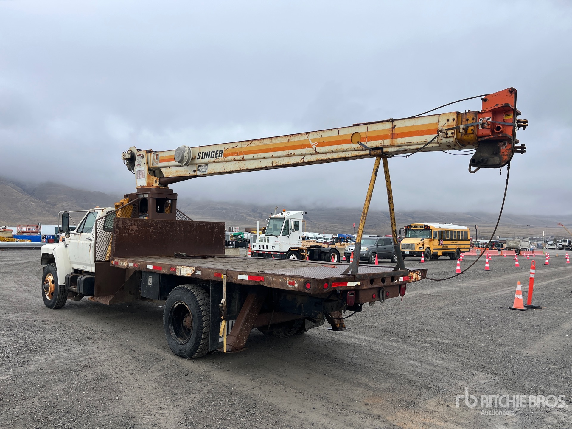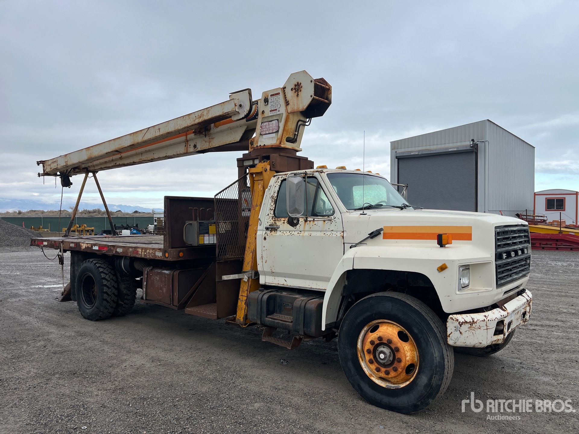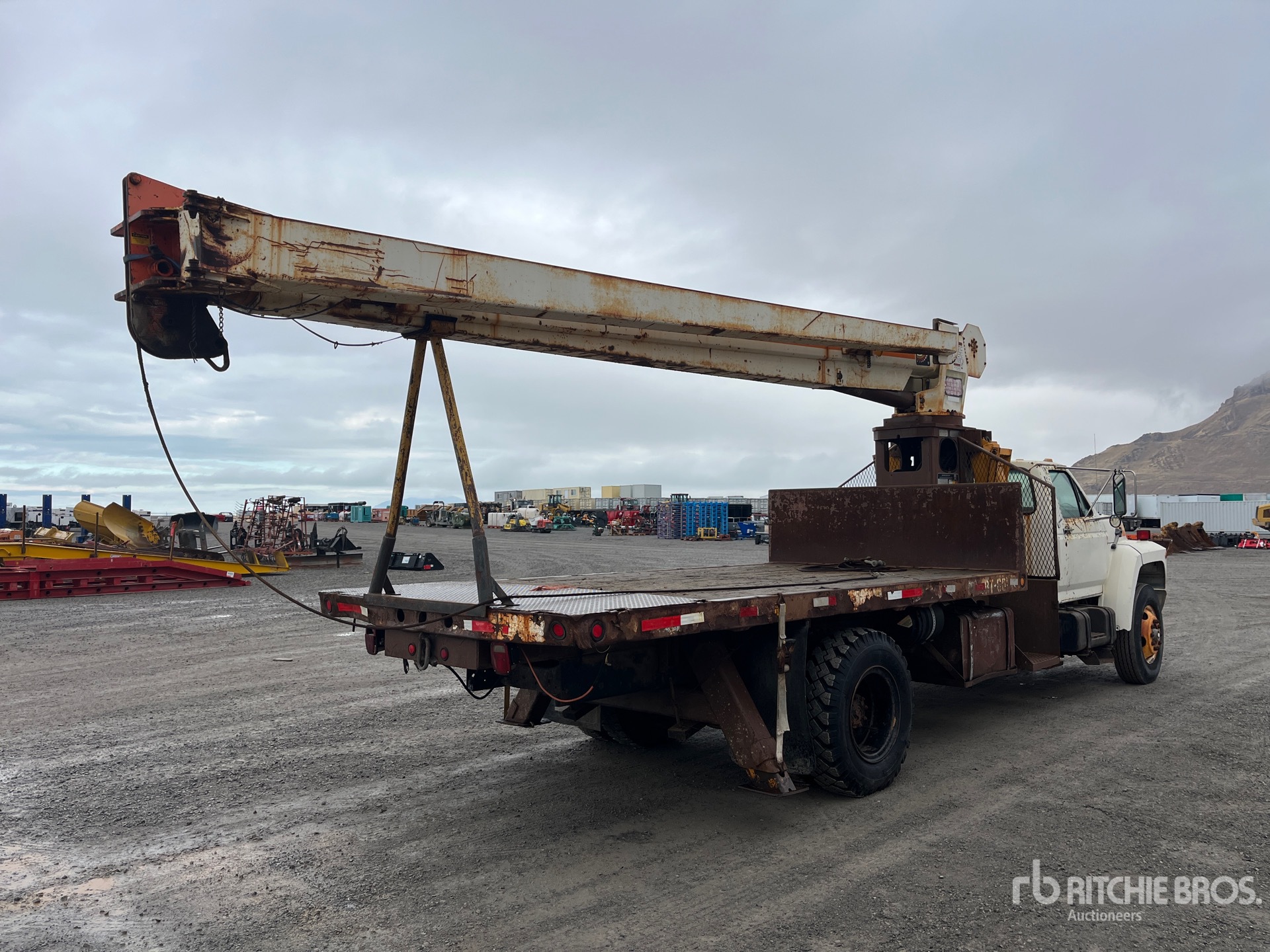 Cummins 6 Cylinder Diesel Engine, 5-Speed Manual Transmission, 11R22.5 Front Tires, 10.00-20 Rear Tires, Spring Suspension, 215 in Wheelbase, PTO, 64 ft - 104 ft 4 Section Boom, 21 ft Jib, Dual Controls, A-Outriggers, RO 22500 lb 4 Section Hydraulic Crane, 15 ft 4 in x 96 in Bed