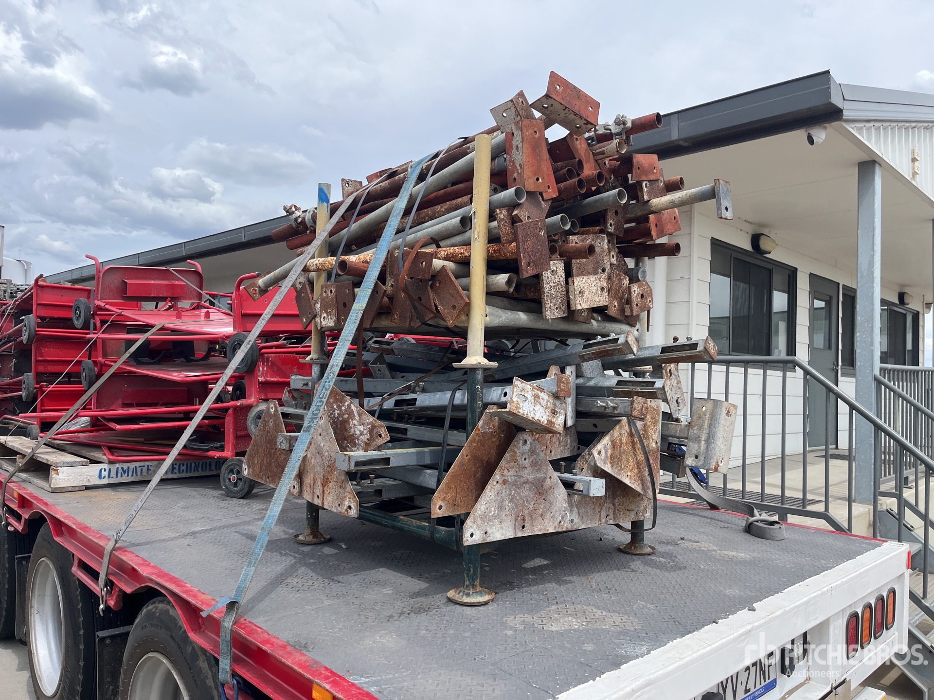 การวัดเป็นเพียงการประมาณการเท่านั้น ขนาดที่บรรทุกจริงอาจแตกต่างกันไปตามความสูงของรถบรรทุก/รถพ่วง และการกำหนดค่า/ตำแหน่งของเครื่องที่บรรทุก เป็นความรับผิดชอบของผู้ซื้อในการวัดน้ำหนักทั้งหมดก่อนออกจากสถานที่ประมูลของเรา เพื่อให้แน่ใจว่าน้ำหนักบรรทุกนั้นปลอดภัยสำหรับการขนส่ง การวัดทั้งหมดควรได้รับการตรวจสอบโดยผู้ซื้อ อย่าพึ่งพาการวัดเหล่านี้เพื่อวัตถุประสงค์ในการขนส่ง