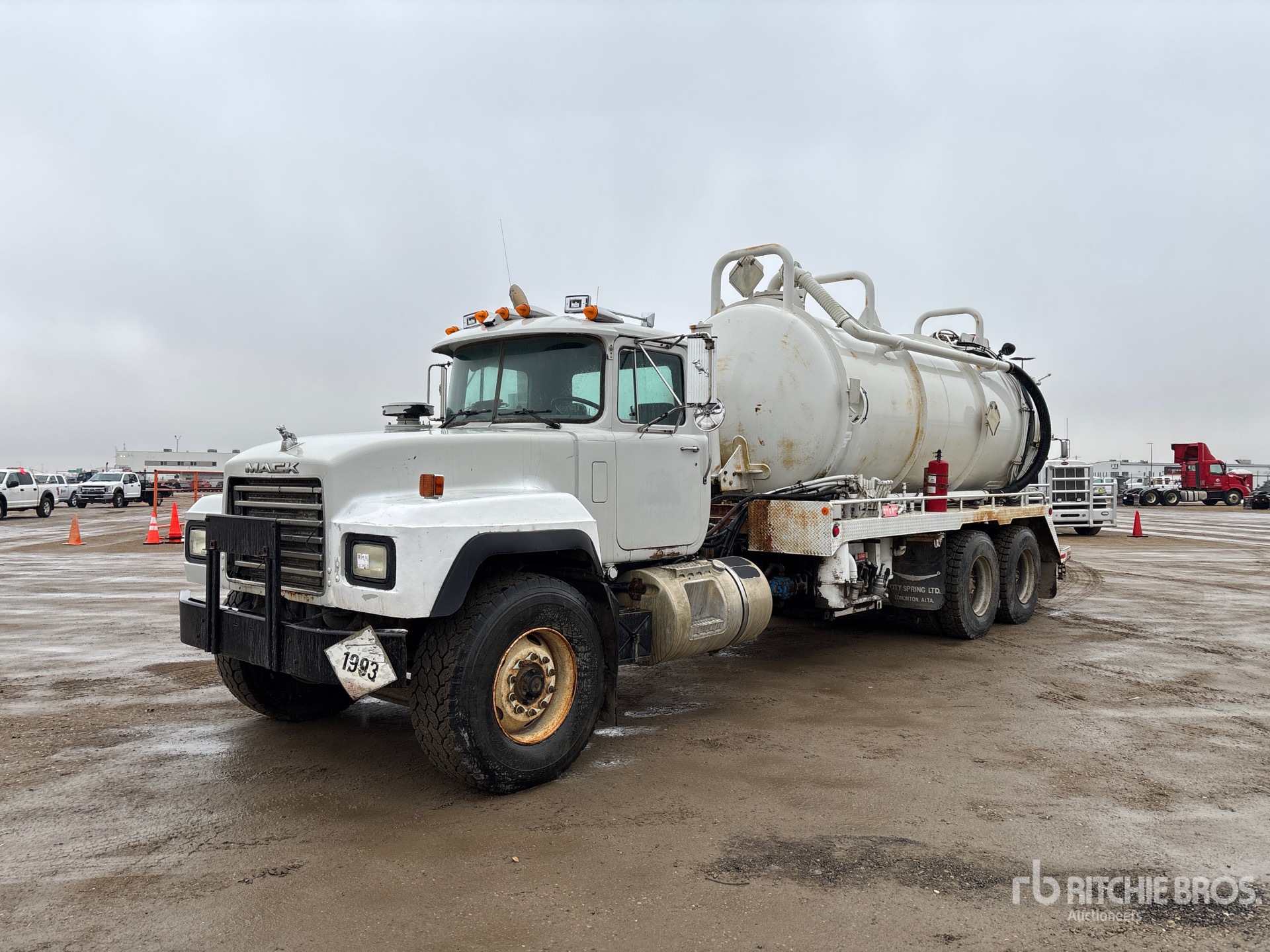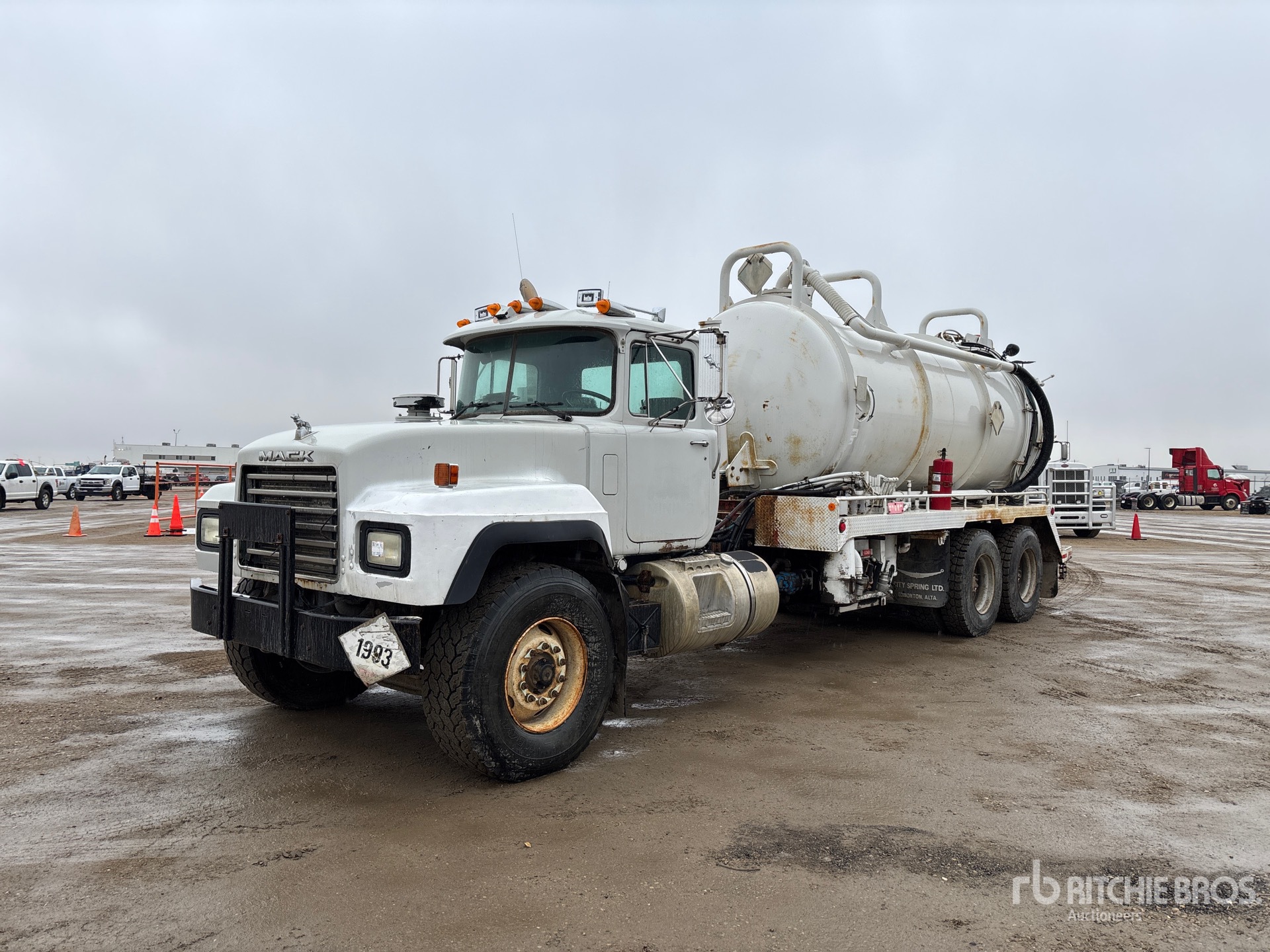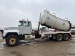 Mack 6 Cylinder 11.9 L Diesel 350 hp Engine, 1999 US EPA Label, 25493 Engine hrs, Engine Brake, Eaton Fuller 8LL Manual Transmission, 13000 lb Front Axle, 44000 lb Rears, 62000 lb GVWR, 425/65R22.5 Front Tires, 11R22.5 Rear Tires, Camelback Suspension, 256 in Wheelbase, PTO, Steel 13230 L Debris Tank, Hoist, Vibrator, Hydraulic Lift Tailgate, Manual Tailgate Locks, Hydraulic Driven Pump